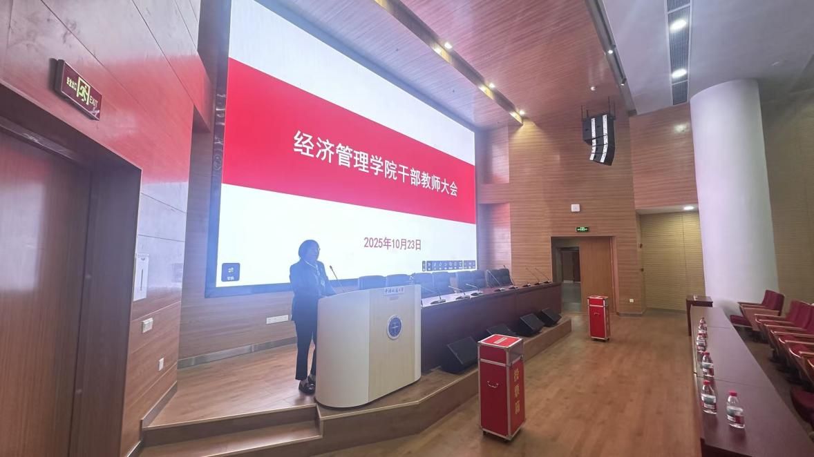 (通讯员:海鸣)2025 年 10 月 23 日下午,经济管理学院隆重召开副院长民主推荐大会。校党委组织部部长陈文武主持会议,组织部副部长张建华、吴妍、郭倩、王珩等党委考察组人员到会指导。经济管理学院党委书记杨昌锐、院长於世为带领全院教职工共同出席会议,确保民主推荐工作规范有序推进。