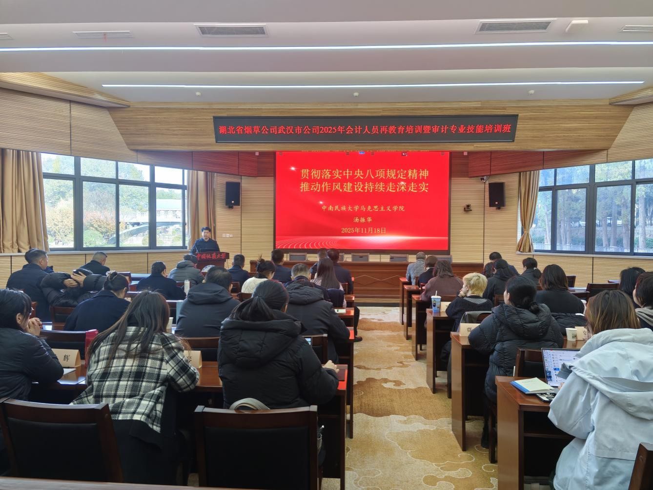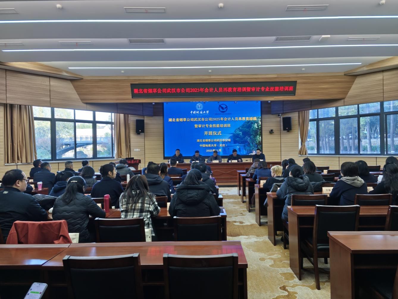 (通讯员:陈永平)2025年11月18日上午,湖北省烟草公司武汉市公司2025年会计人员再教育培训暨审计专业技能培训班开班仪式在中国地质大学(武汉)八角楼报告厅隆重举行。湖北省烟草公司武汉市公司党委委员、副经理、副局长陈劲,财务处长李华华,审计处处长邓斌;中国地质大学(武汉)经济管理学院党委书记薛保山,院长於世为等出席,湖北省烟草公司武汉市公司财务处长李华华主持本次开班仪式。