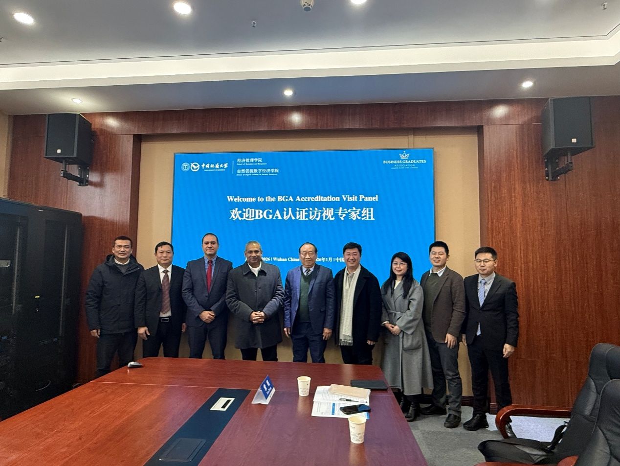 (通讯员:李雪莹)2026年1月7日至10日,中国地质大学(武汉)经济管理学院迎来 BGA 国际认证现场评估。认证专家组由马来西亚北方大学 Hassan Bin Abu Bakar 教授、浙江大学王重鸣教授、AMBA&BGA 认证总监 George Iliev 先生组成,通过实地考察、座谈交流等多形式,全面评估学院办学质量与发展潜力。