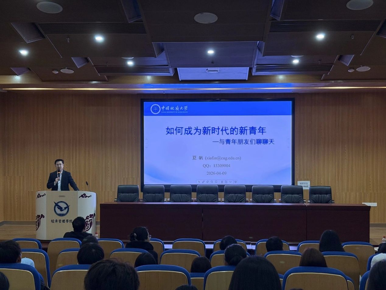 4月9日上午,中国地质大学(武汉)党委常委、副校长夏帆在经管楼一楼报告厅为学院师生讲授了一堂主题为“如何成为新时代的新青年”的专题党课。学院领导班子成员、教师党员代表、学生党员代表等100余人参加学习。