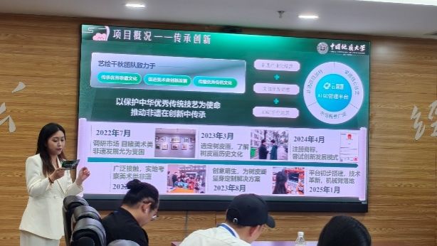 比赛采用“8+7”模式,即报告陈述时间为8分钟,答辩时间为7分钟。各团队按照抽签顺序依次进入会场,围绕人工智能赋能、非遗文化、校园服务、智慧农业、环保低碳、工业安全等主题展开,展现出较好的创新意识与实践能力。
