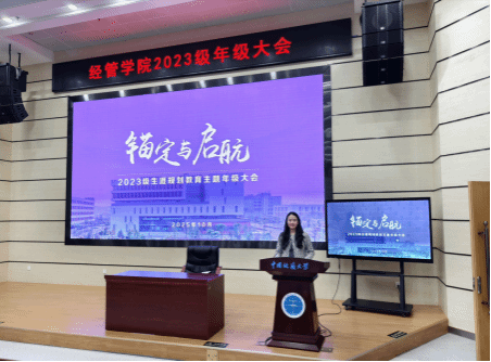 (通讯员:夏益骏)10月30日下午,经济管理学院2023级“锚定与启航”生涯规划教育主题年级大会在公教一208报告厅顺利召开。院党委副书记李纪亮、高顿教育武汉国际业务总经理杨速杰、万学教育海文考研湖北分校校长谭晓禹、学院全体2023级本科生参加会议。会议由2023级辅导员徐媛主持。大会主题为“锚定与启航”,围绕学业规划、就业形势与考研备考等内容展开深入讲解,助力大三学子明确发展方向、规划未来路径。
