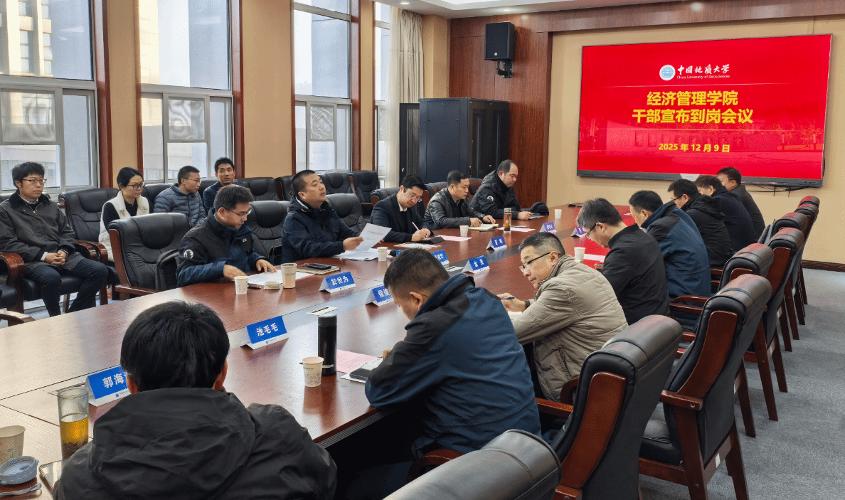 2025年12月9日上午,经济管理学院在南望山校区东区综合楼B706会议室召开干部教师大会宣布干部到岗。校党委常委、副校长夏帆出席会议学院新任副院长金贵、侯俊东、池毛毛、郭海湘,学院领导班子成员、三级单位负责人及教职工代表参加会议。校党委组织部副部长张建华主持会议。